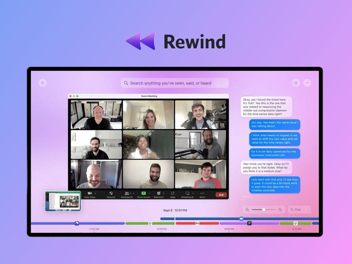 Rewind — це AI інструмент, розроблений для користувачів Mac, який служить комплексною системою для пошуку та організації особистих даних у цифровому просторі. Rewind записує практично всі ваші взаємодії на комп’ютері Mac, зберігаючи детальний запис ваших дій. Пізніше всі записані дані стають доступними для пошуку, фактично перетворюючи ваші минулі цифрові дії в доступну базу даних. Інструмент знімає ваш екран, виконує оптичне розпізнавання символів (OCR) у відеоконтенті та навіть записує аудіо, зокрема під час зустрічей Zoom. Цей масив інформації потім індексується та стає доступним для швидкого пошуку.