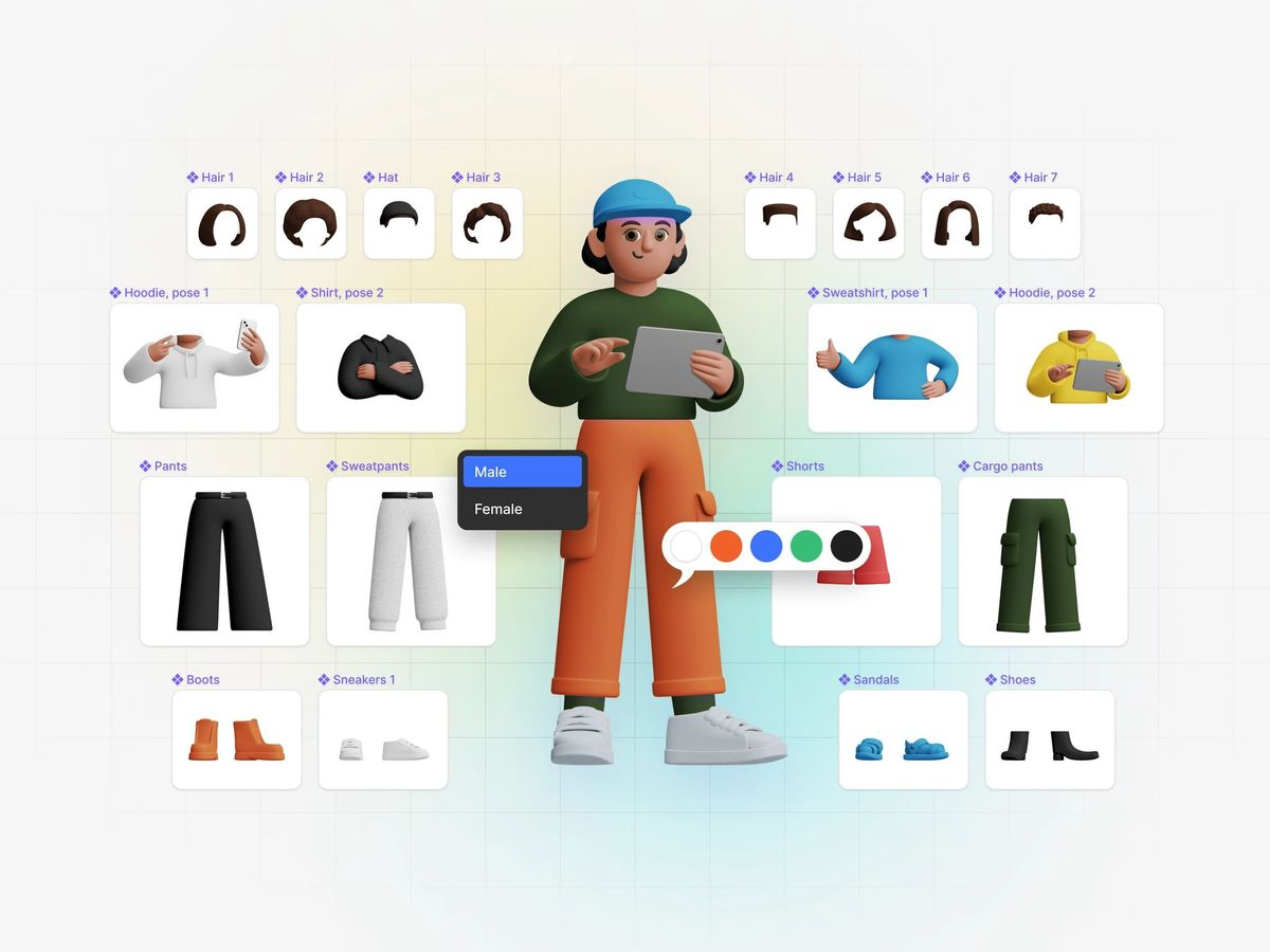 Superhuman — це потужний 3D конструктор персонажів, який дозволяє створювати повністю кастомізованих персонажів для дизайну інтерфейсів. За допомогою готових елементів конструктора ви можете складати персонажів, що будуть відповідати вашим вимогам, вибираючи де і який елемент використати.