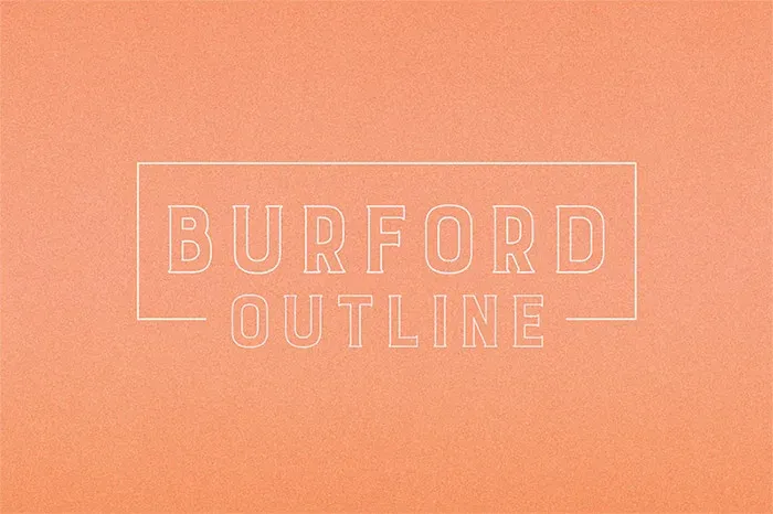 Burford - це гарнітура шрифтів з великими засічками, які можна використовувати разом або накладати один на одного. Посилання призначене для контурної версії шрифту. Він має безліч можливостей і комбінацій, а також є одним з найкращих шрифтів для друку, тому Burford можна використовувати для створення безлічі різних проєктів. До комплекту також входить вебшрифт.