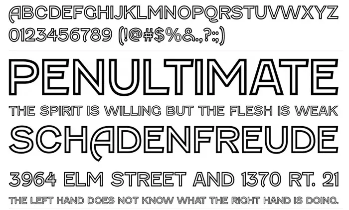 У цій статті ми зібрали наші улюблені контурні шрифти, багато з них є OpenType, інші гарнітури включають тільки їх контурну версію, деякі з них є виключно контурними шрифтами, які можна використовувати самостійно або у поєднанні із суцільними шрифтами.