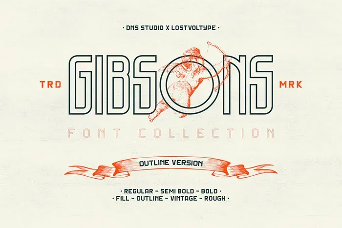 Gibsons — це стильна гарнітура, яка включає 20 різних шрифтів. Вище посилання на п'ять контурних шрифтів, що входять до гарнітури. Шрифт налічує кілька різних ваг та варіацій, так що ви матимете деяку різноманітність. У набір також входять гліфи та вебшрифт. Накреслення Gibsons ідеально підходить для оформлення плакатів, обкладинок альбомів, футболок та іншого одягу, пакування та етикеток, а також інших художніх та цифрових робіт.