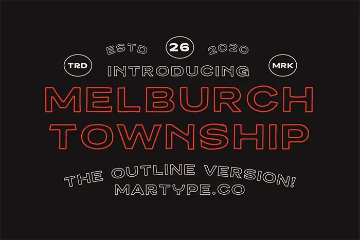 Melburch Typeface – це вінтажний шрифт без засічок, а це його контурна версія. Набір за посиланням включає звичайну версію зображення і похилу. Це відмінний варіант для ретро-вивісок, етикеток, пакування товарів, бейджів, логотипів, брендингу, готових до друку дизайнів та багато іншого.