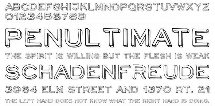 Neoretrodraw - накиданий вручну контурний шрифт із тривимірним зображенням. Ви можете завантажити цей повністю великий шрифт з накресленням від руки з сайту FontSquirrel.