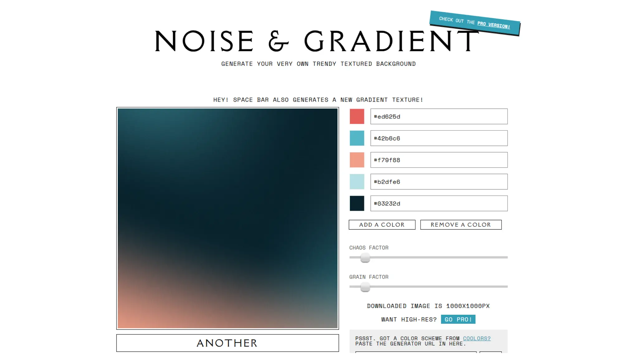 Noise & Gradient — простий та зручний інструмент для створення оригінальних фонових зображень з ефектом зернистості та багатоколірними градієнтами.