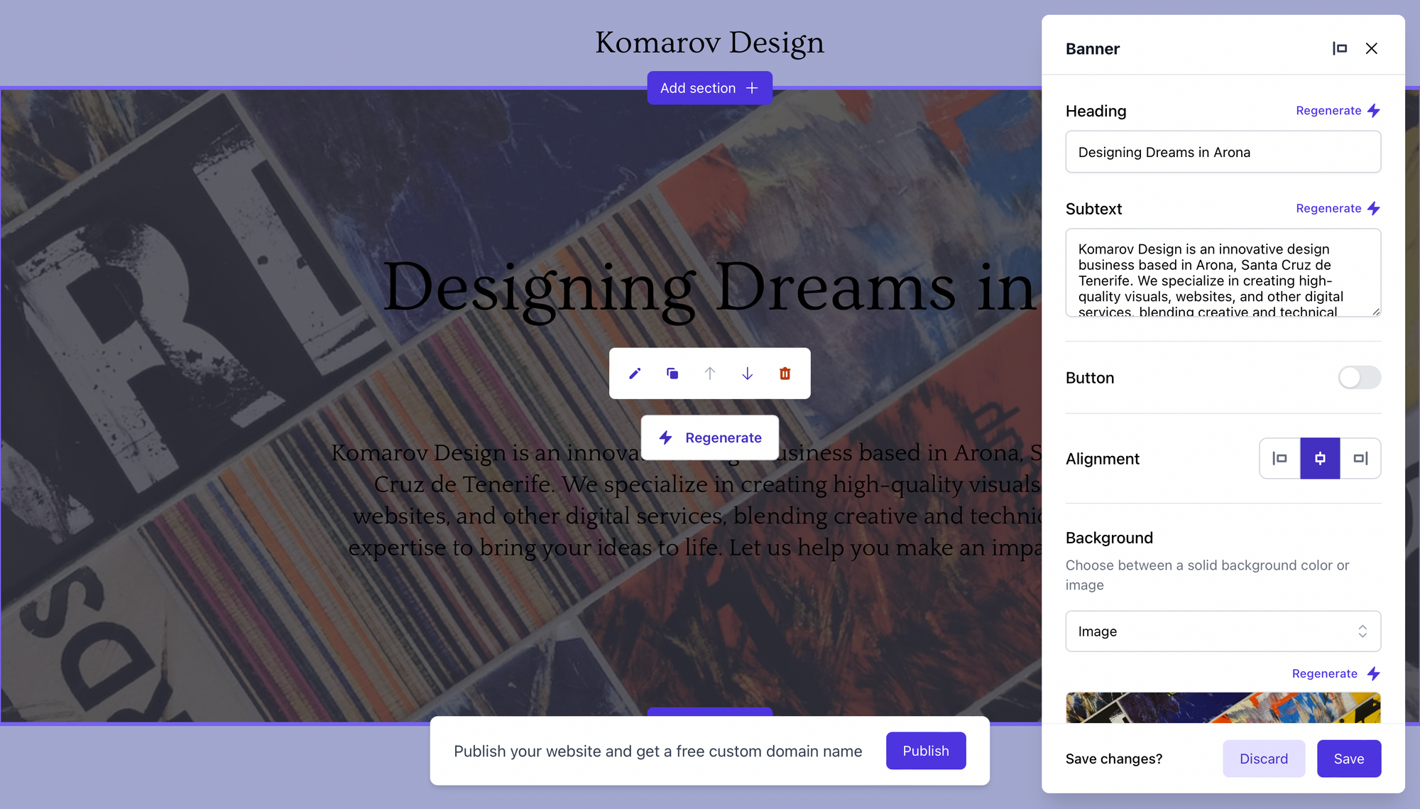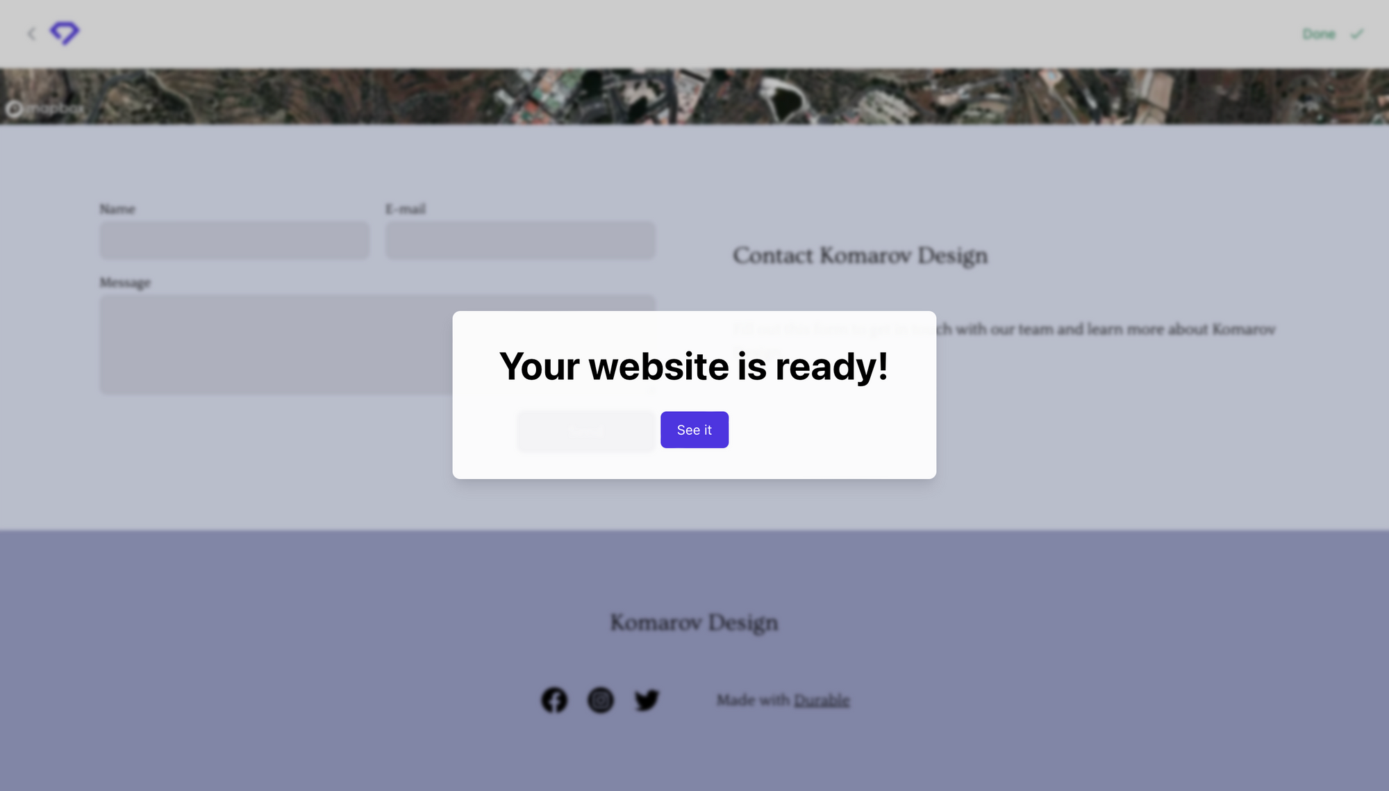 Після цього, Durable потребує до хвилини часу для того, щоб згенерувати шаблон сайту. Чому саме шаблон? Бо навряд чи ви зможете опублікувати згенерований сайт відразу, без жодних коригувань з боку вмісту, або навіть додасте нові сторінки чи секції.