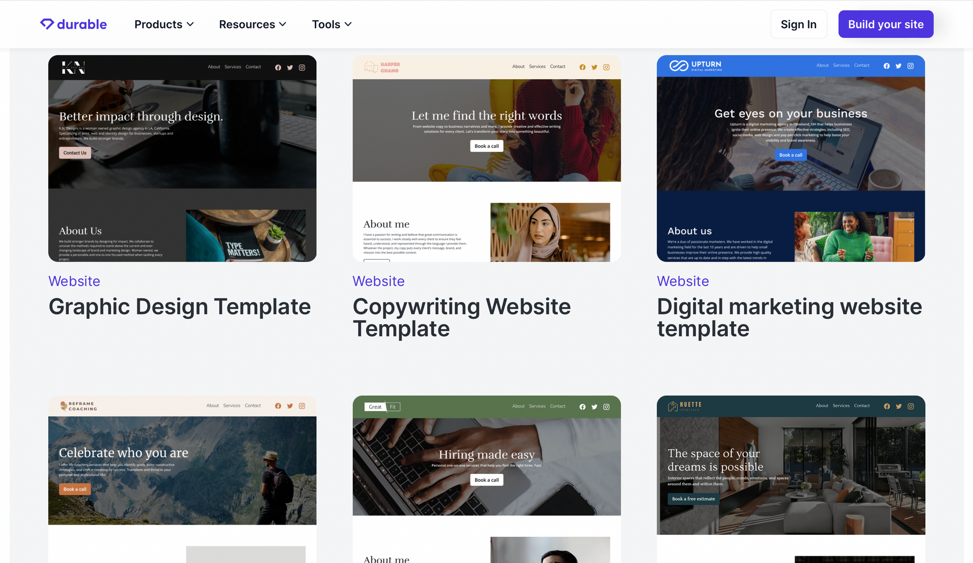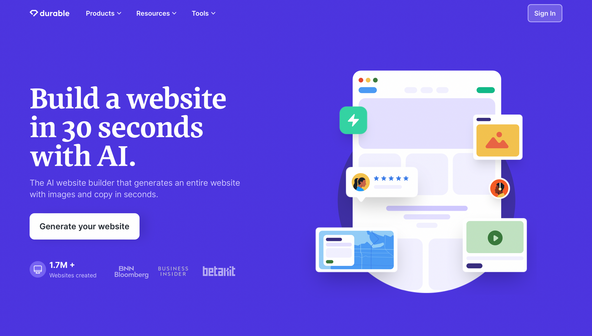 Durable — це потужна платформа, яка пропонує широкий спектр функцій, щоб допомогти власникам малого та середнього бізнесу швидко й легко створювати сайти професійної якості економічно вигідно та без навичок кодування