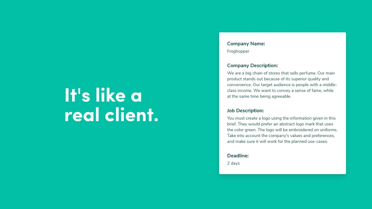 - Нестандартні завдання: деякі брифи можуть містити неоднозначну інформацію та вихідні дані, які, на перший погляд, здаються суперечливими або складними. Для чого це зроблено? Для того, щоб максимально точно відобразити ситуації з реального життя, коли клієнти надають неоднозначні інструкції щодо дизайну. Такі випадки можуть допомогти дизайнерам розвивати свою здатність працювати в умовах нечітких вимог і розв'язувати проблеми творчо.