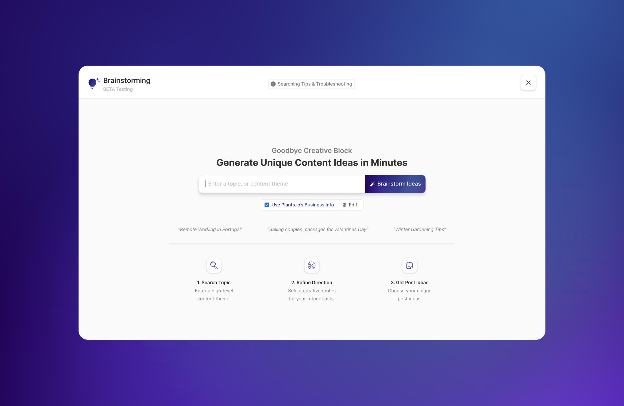Згенеруйте ідею для контенту: введіть тематику чи нішу вашого бізнесу, тисніть “Пошук”. Результати покажуть безліч унікальних ідей для контенту, які ви можете використовувати та розширювати.
