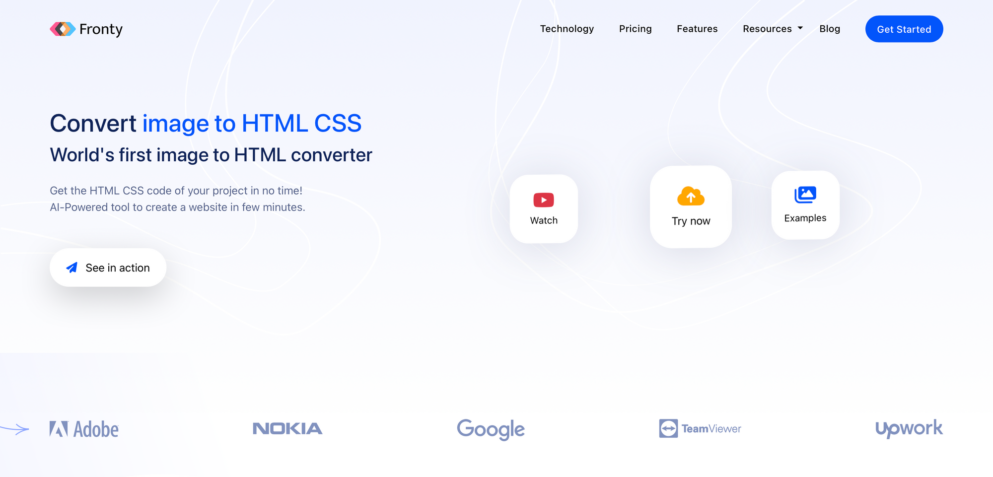 Fronty — конвергенція двох різних сфер: штучного інтелекту та інтерфейсної веброзробки. Розроблений у відповідь на труднощі у процесі перетворення дизайнерських концепцій на функціональні вебсайти. Fronty ставить за мету оптимізувати цей процес за допомогою своєї технології перетворення зображень у код.