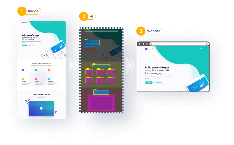 Після чого, складні алгоритми штучного інтелекту перетворюють ці візуальні елементи в структурований код HTML і CSS. Цей згенерований код служить основою для інтерфейсу вебсайту, передаючи суть оригінального дизайну. Результат — дивовижне поєднання людської креативності та точності штучного інтелекту, що дає розробникам перевагу в процесі кодування.