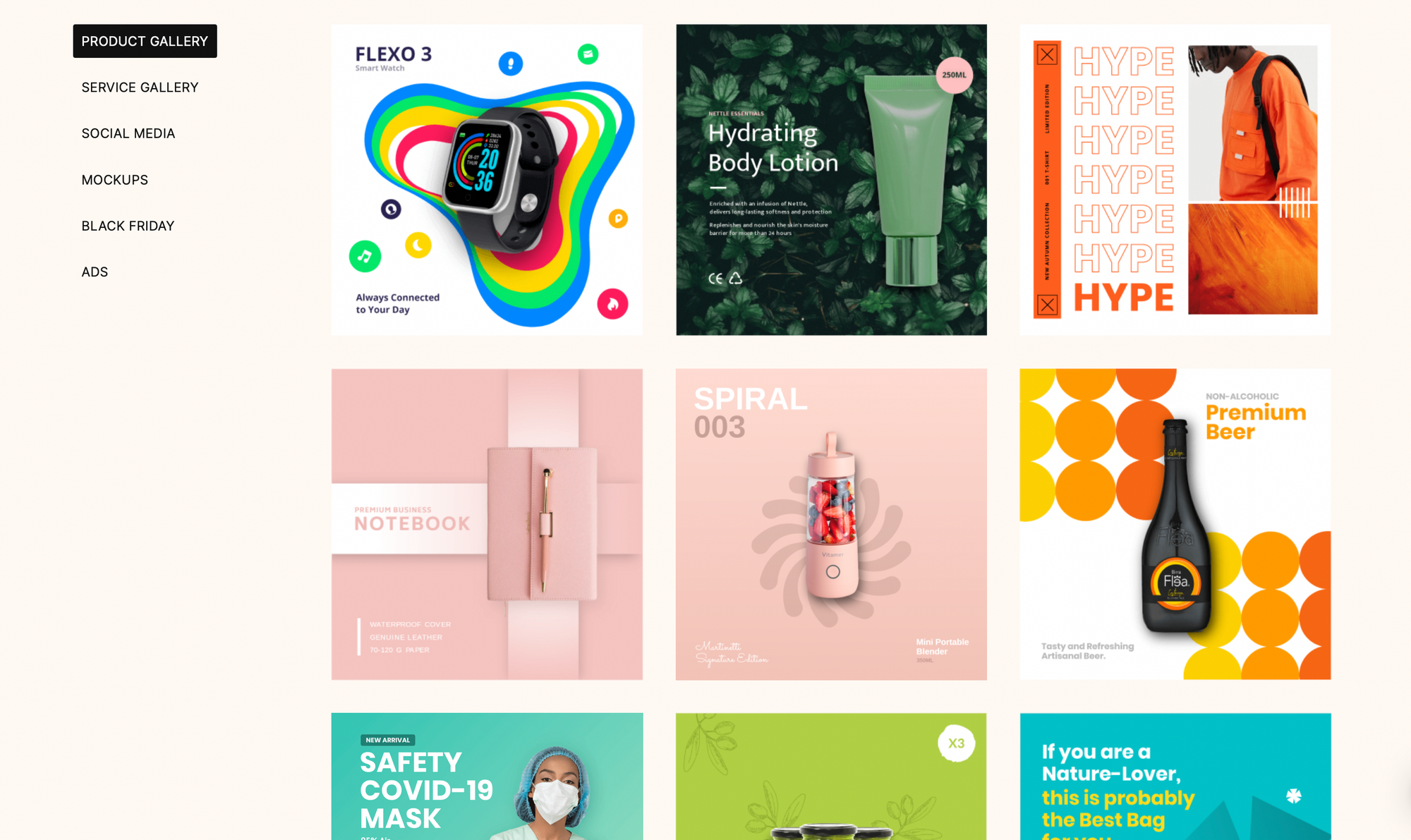 Glorify має величезну кількість різноманітних шаблонів у високій якості та допоможуть швидко створити необхідні маркетингові матеріали, дописи, презентації, банери тощо. Шаблони постійно оновлюються, а нові постійно додаються в Glorify. Деякі з цих шаблонів потрібно оновити безпосередньо в програмному забезпеченні. Є 4 величезні категорії шаблонів, включаючи електронну комерцію, соціальні мережі, рекламу, а також електронні книги. Категорія шаблонів соціальних медіа охоплює всі платформи, включаючи Instagram, Facebook та інші соціальні мережі. Подібним чином категорія шаблонів електронної комерції охоплює всі сайти, такі як Amazon, Shopify, Woo-size, а також WordPress. Крім того, електронна книга містить сторінки зі змістом, а категорія «Оголошення» пропонує шаблони для будь-якої платної реклами в інтернеті.