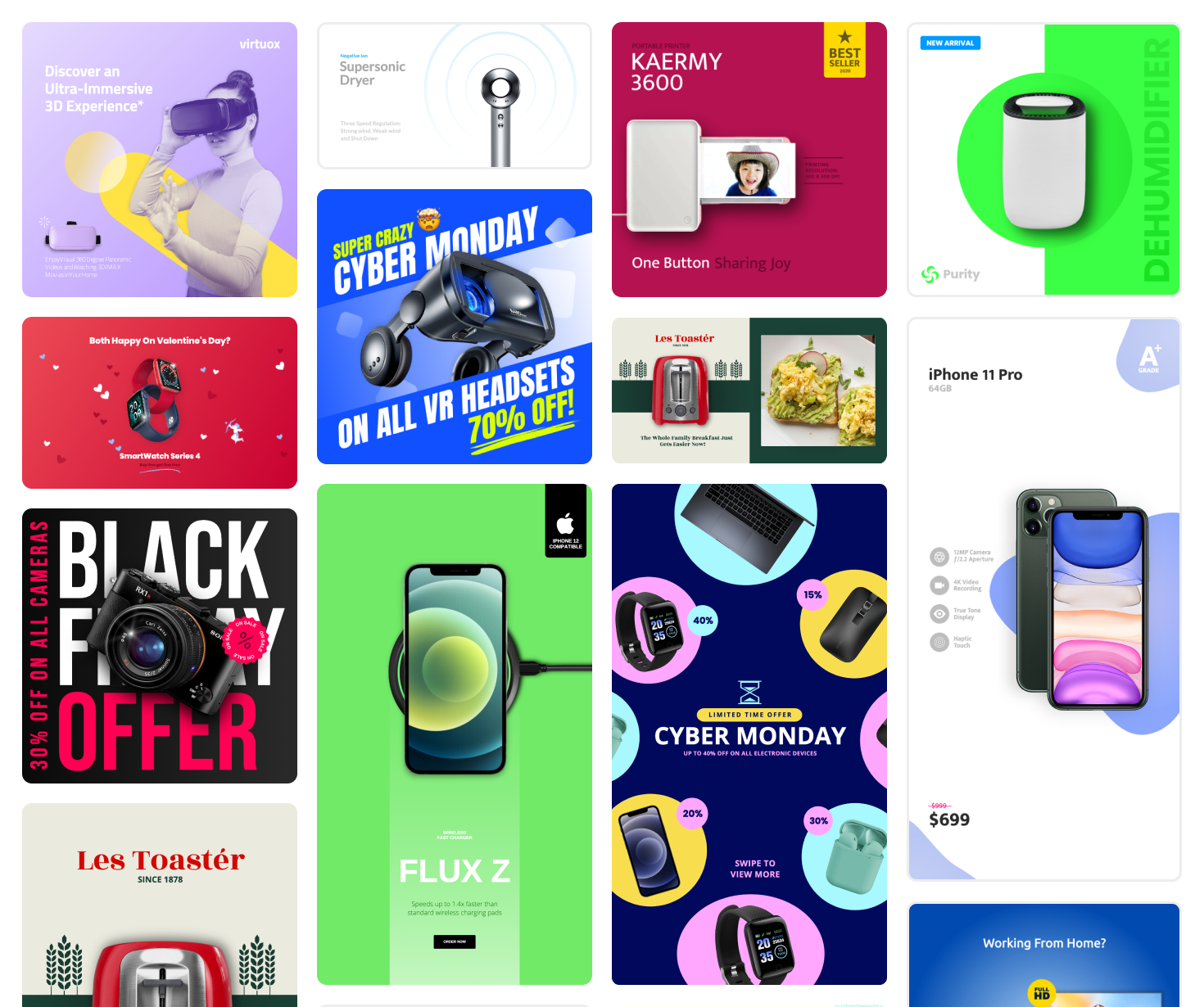 Шаблони: отримуйте доступ до тисячі шаблонів електронної комерції, типографіки, рекламних оголошень, а також логотипів, презентацій та дописів для соціальних мереж.