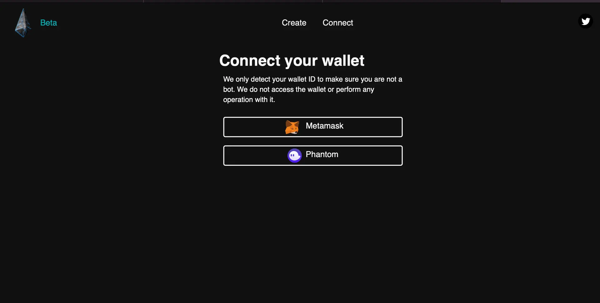 - Підключіть свій крипто-гаманець на веб-сайті, щоб увійти. Це може бути всім відомий MetaMask або Phantom.