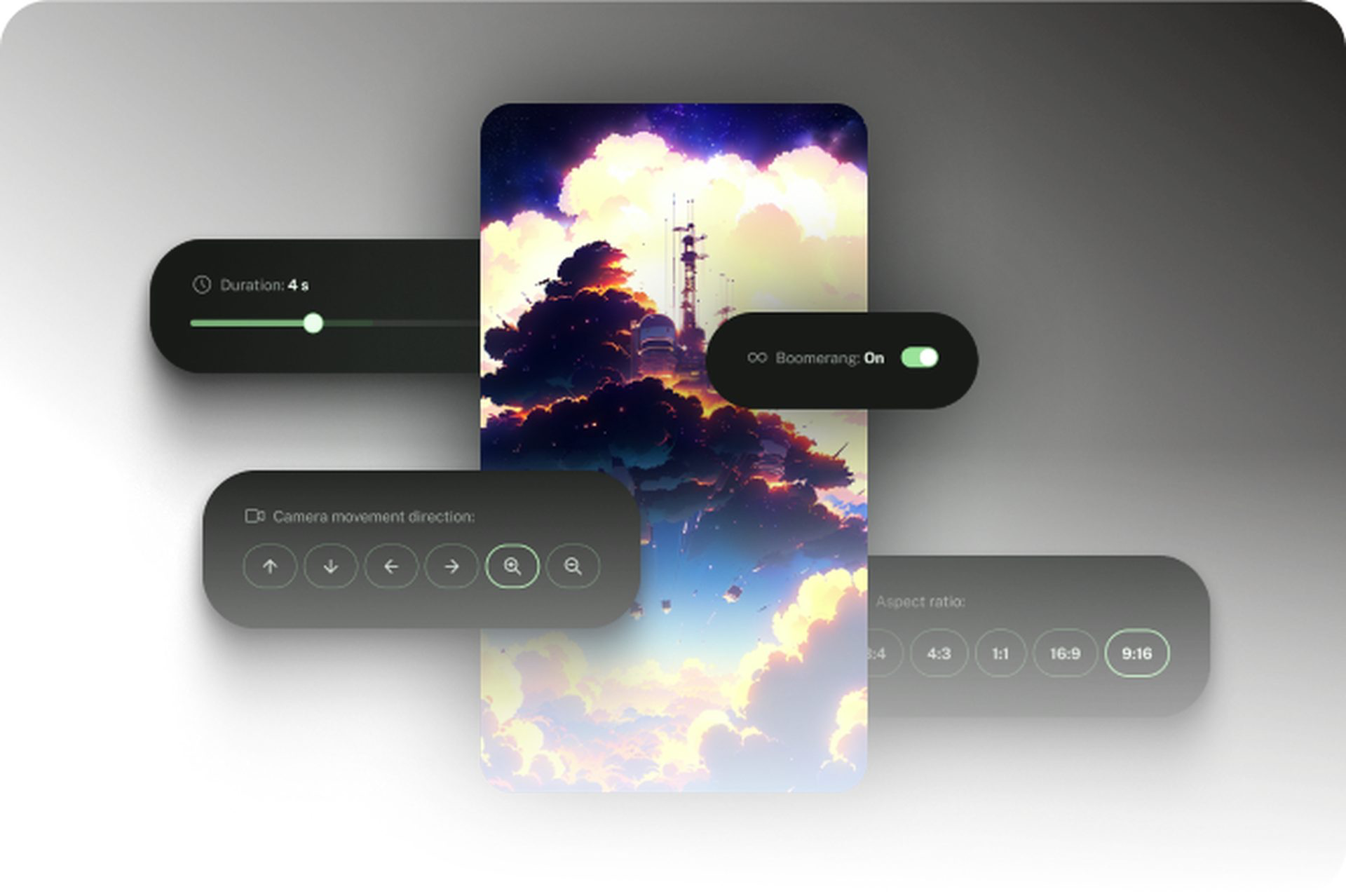 - Вибирайте напрям руху камери: функція дає можливість керувати рухами камери у ваших відео. Ви можете вибрати певні кути камери, панорамування, масштабування або обертання для створення динамічних відеорядів.