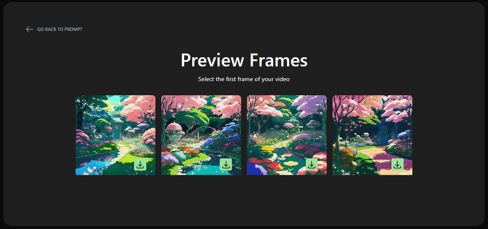 Виберіть початковий кадр. Kaiber представить вам вибір базових зображень, кожне з яких має особливий настрій або стиль. Виберіть той, який резонує з вашим проєктом, оскільки він стане відправною точкою для вашого творіння. Експортуйте. Завантажте своє відео в бажаному форматі та роздільній здатності.