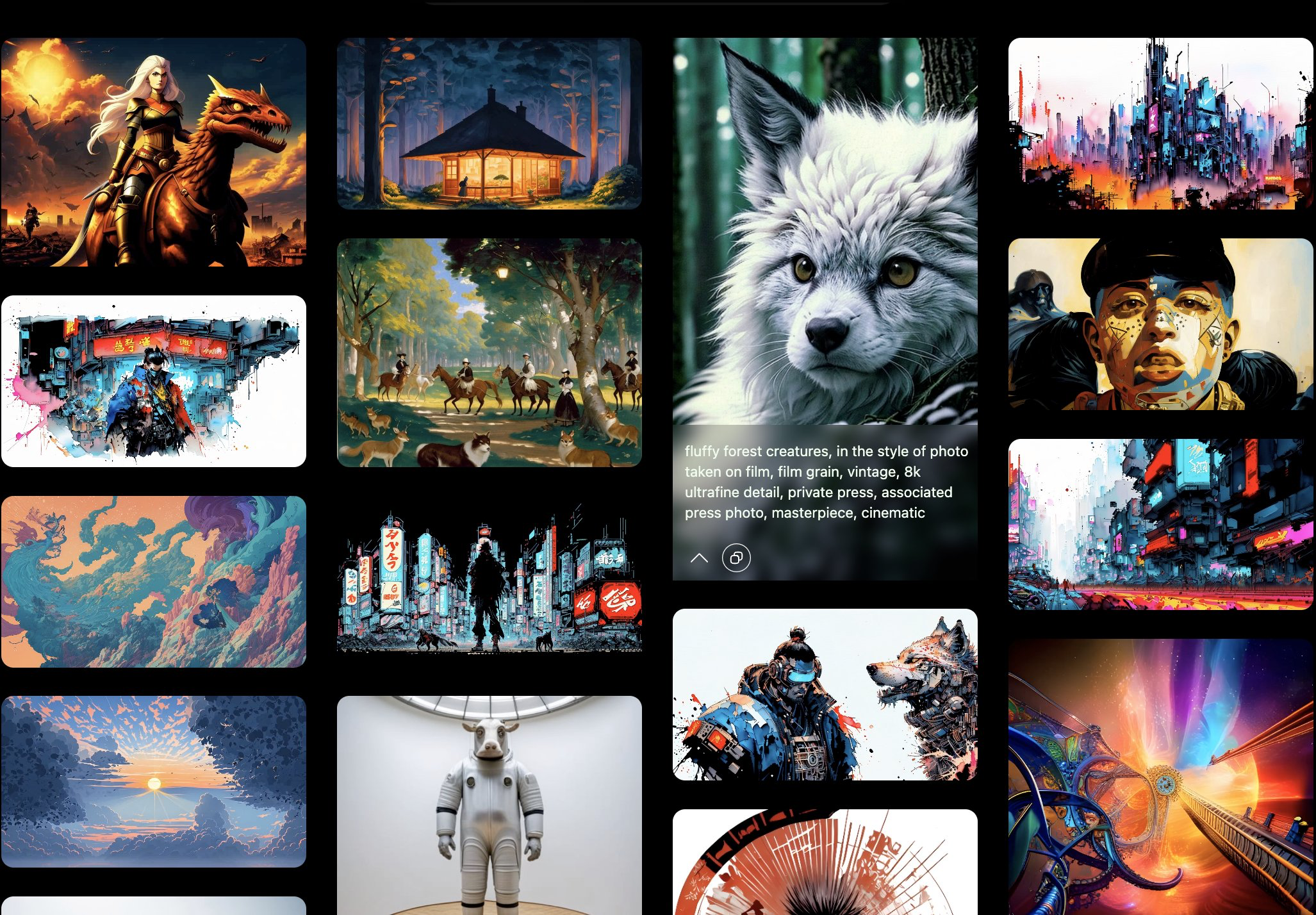 - Різноманітні стилі: платформа вміщує широкий спектр художніх стилів. Незалежно від того, чи приваблює вас аніме, концепт-арт чи імпресіонізм, Kaiber дозволить експериментувати з різною естетикою, щоб знайти ту, яка резонує з вами й вашим проєктом.