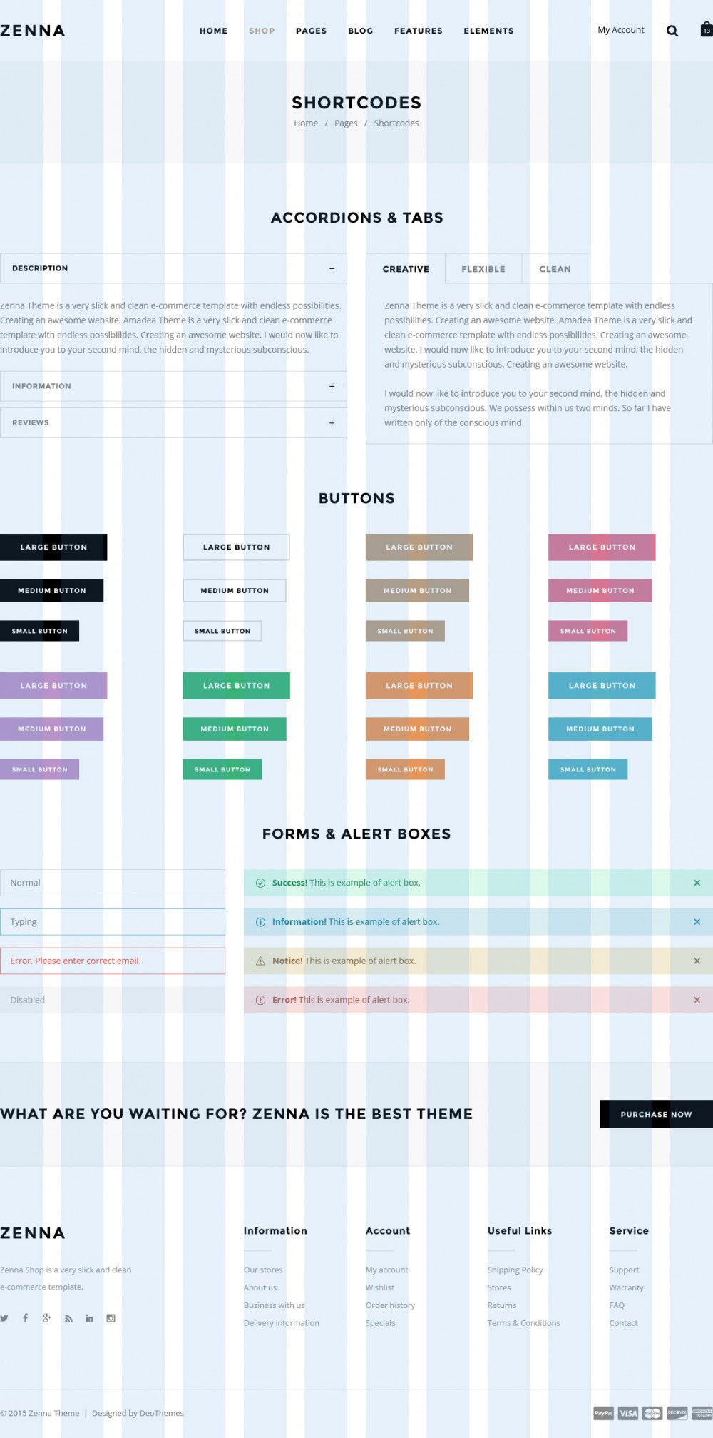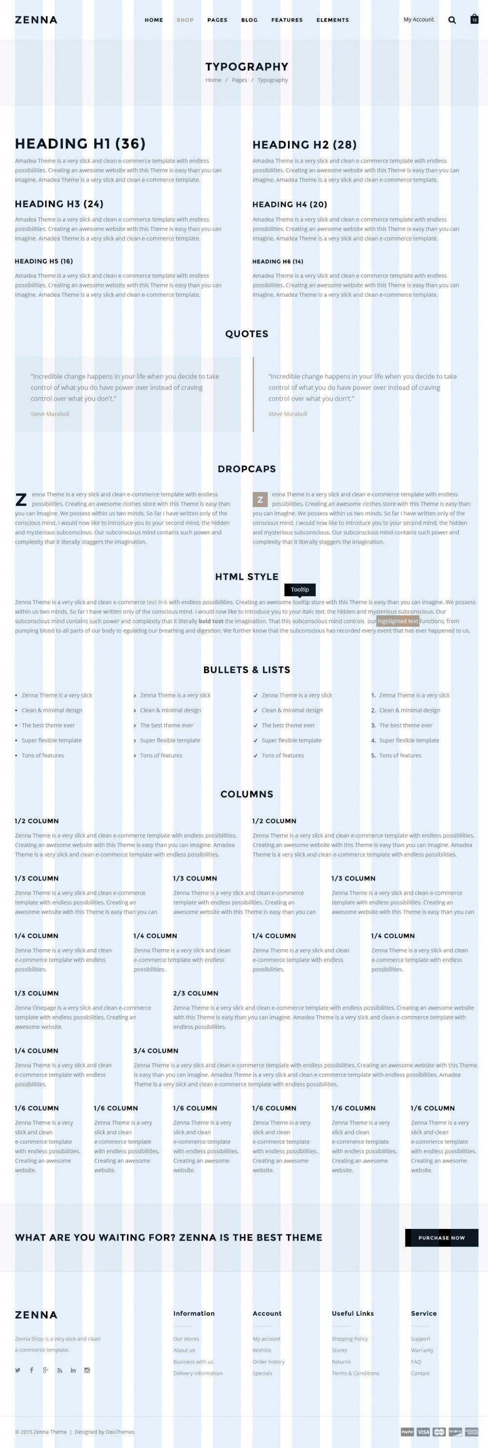 Как видите, все четко, ровно, по колонкам. Конечно, если вы смотрели внимательно, то заметили, что кнопки выходят за колонки. Это нормально, такое допустимо, основа блока сделана по сетке, а внутри блока, уже допустимы отклонения. Выше на скрине можете еще увидеть у цитат текст не по колонкам. Это тоже нормально. Сама основа (фон) сделана ровно по колонке, а то что уже внутри этого блока происходит может жить своей жизнью, как ей удобно. Внутри автор добавил для цитаты отступы, дал воздух тексту со всех сторон и цитата выглядит симпатично и хорошо. И точно так же в футере иконки оплаты выровнены по правому краю, а уже внутри блока, иконки не подчиняются сетке, хотя можно сделать иконки и больше, и подогнать ровно под три колонки, но они будут выглядеть гигантскими. Тут уже надо развивать вкус, чувствовать композицию, соотношения объектов, баланс. Все придет со временем.