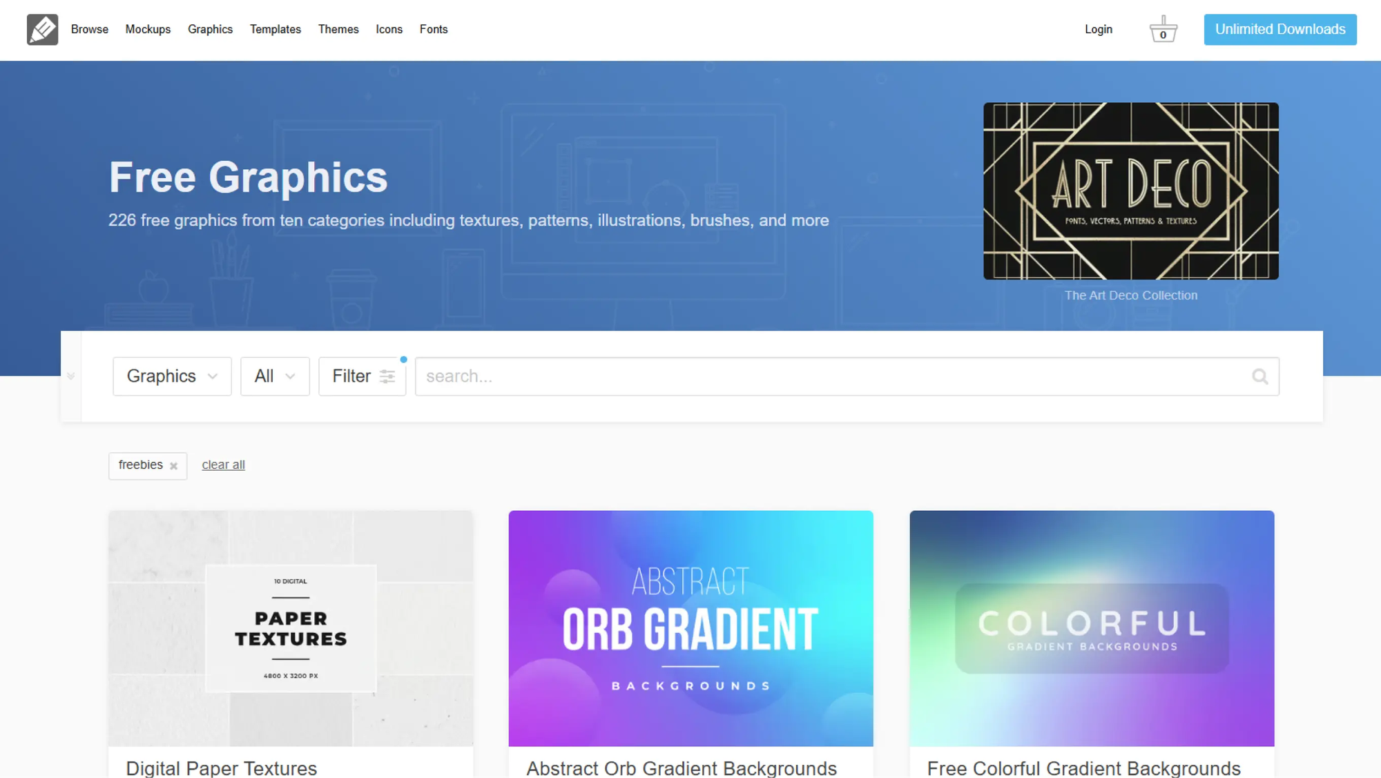 Бібліотека графічних ресурсів для дизайнерів, що містить тисячі шрифтів, іконок, векторних ілюстрацій, текстур, макетів та UI-компонентів. У бібліотеці доступні як безкоштовні, так і преміум-матеріали.