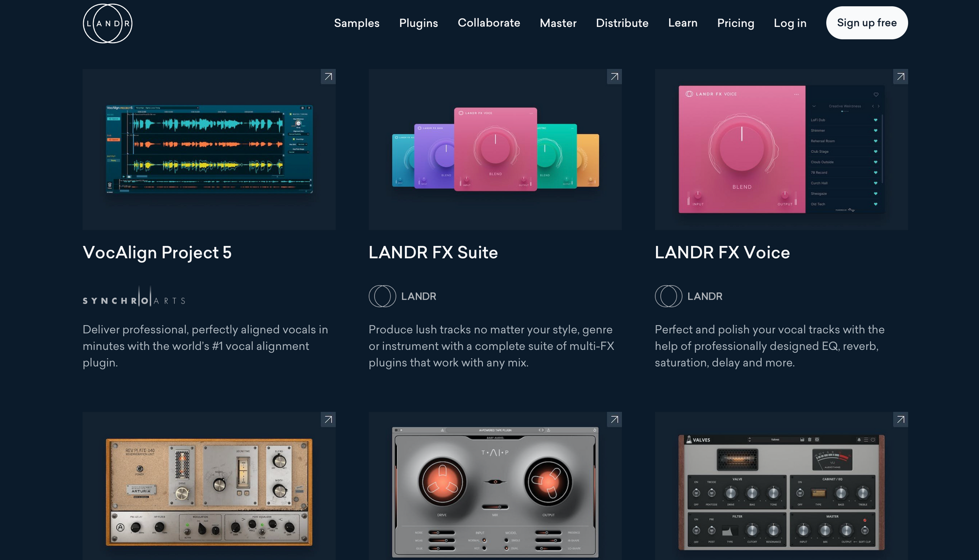 LANDR пропонує широкий вибір VST і плагінів для цифрових аудіостанцій (DAW), включаючи як безкоштовні, так і орендовані варіанти. Це дозволяє користувачам розширювати свої можливості створення музики та мікшування в межах бажаного DAW середовища.