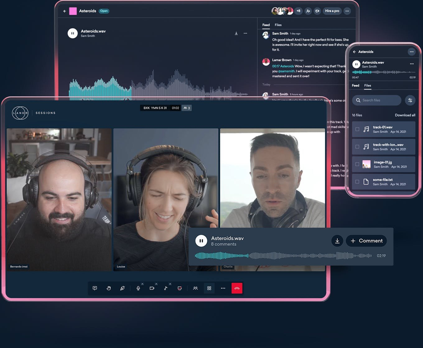 LANDR надає мережеву платформу для спеціалістів у сфері аудіо. Користувачі можуть створювати профілі, завантажувати музику, спілкуватися з іншими спеціалістами та музикантами. Платформа також пропонує онлайн-інструменти для співпраці, такі як Sessions для синхронізації аудіо та Projects для спільної роботи.