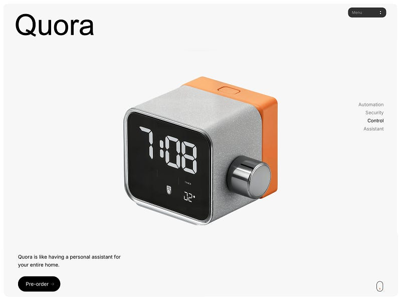 Quora – сучасний Framer-шаблон із чистими макетами, плавними взаємодіями та гнучкими секціями для брендів, продуктів і сервісів.