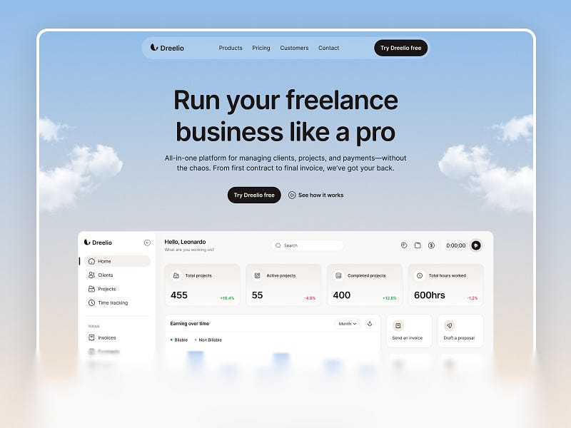 Dreelio – преміальний шаблон для SaaS-продуктів і техстартапів, які хочуть чистий сучасний сайт для реєстрацій і демонстрації продукту.