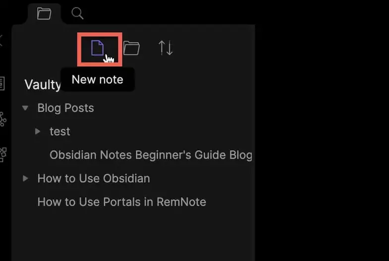 Перший спосіб створити нотатку в Obsidian – це безпосередньо створити нотатку. На панелі «папка» натисніть кнопку «Нова нотатка» або скористайтеся комбінацією клавіш: