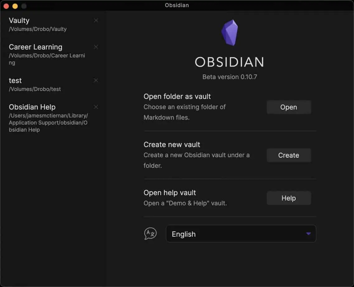 Як згадувалося раніше, сховища – це, по суті, головний каталог, що містить усі нотатки та папки, які пов’язані одна з одною. За замовчуванням Obsidian починається з одного сховища (під назвою Vaulty). Якщо ви хочете мати всі свої нотатки та папки в одному сховищі, окей. Однак, якщо вам потрібні окремі сховища залежно від функції (робоча, особиста, сторонні нотатки тощо) ви можете створити додаткові.