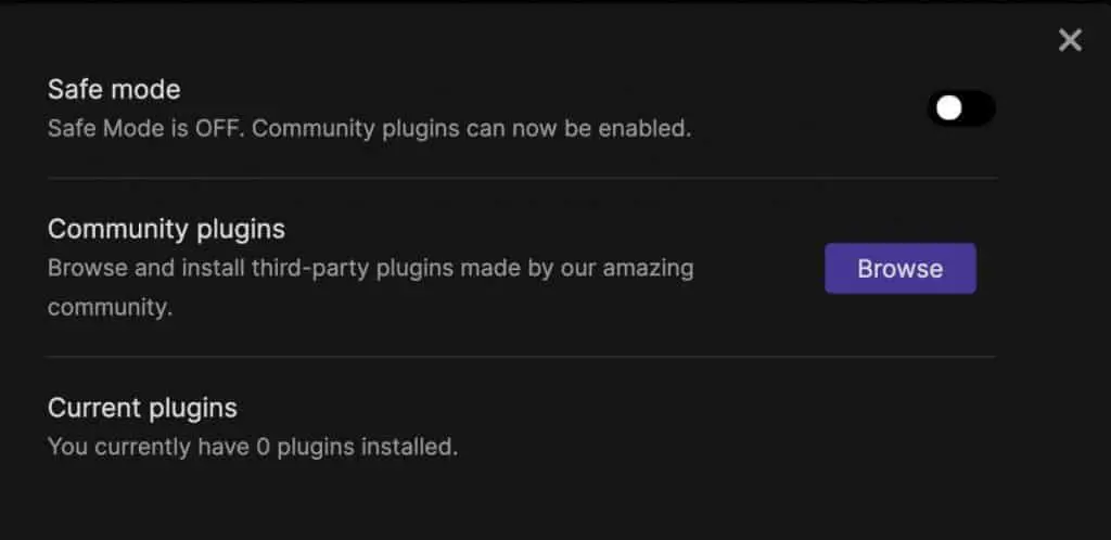 Коли ви вимкнете безпечний режим, ви побачите повідомлення, подібне до наведеного вище, із попередженням про рівень доступу цих плагінів до вашого комп’ютера. Завжди існує ризик використання плагінів сторонніх розробників, тому враховуйте це, вирішуючи, вмикати їх чи ні. Якщо ви вирішите використовувати плагіни сторонніх розробників, я рекомендую обмежити використання лише тими, без яких ви не можете жити, щоб мінімізувати ризик.