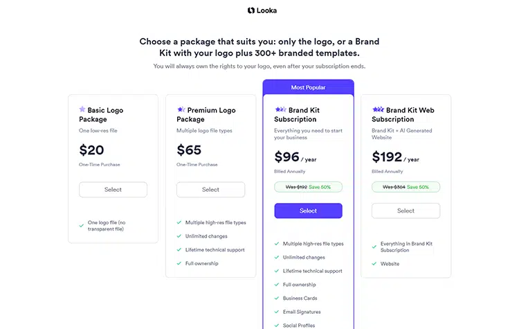 Looka має ряд зручних тарифних планів, розроблених для компаній та команд будь-якого масштабу.