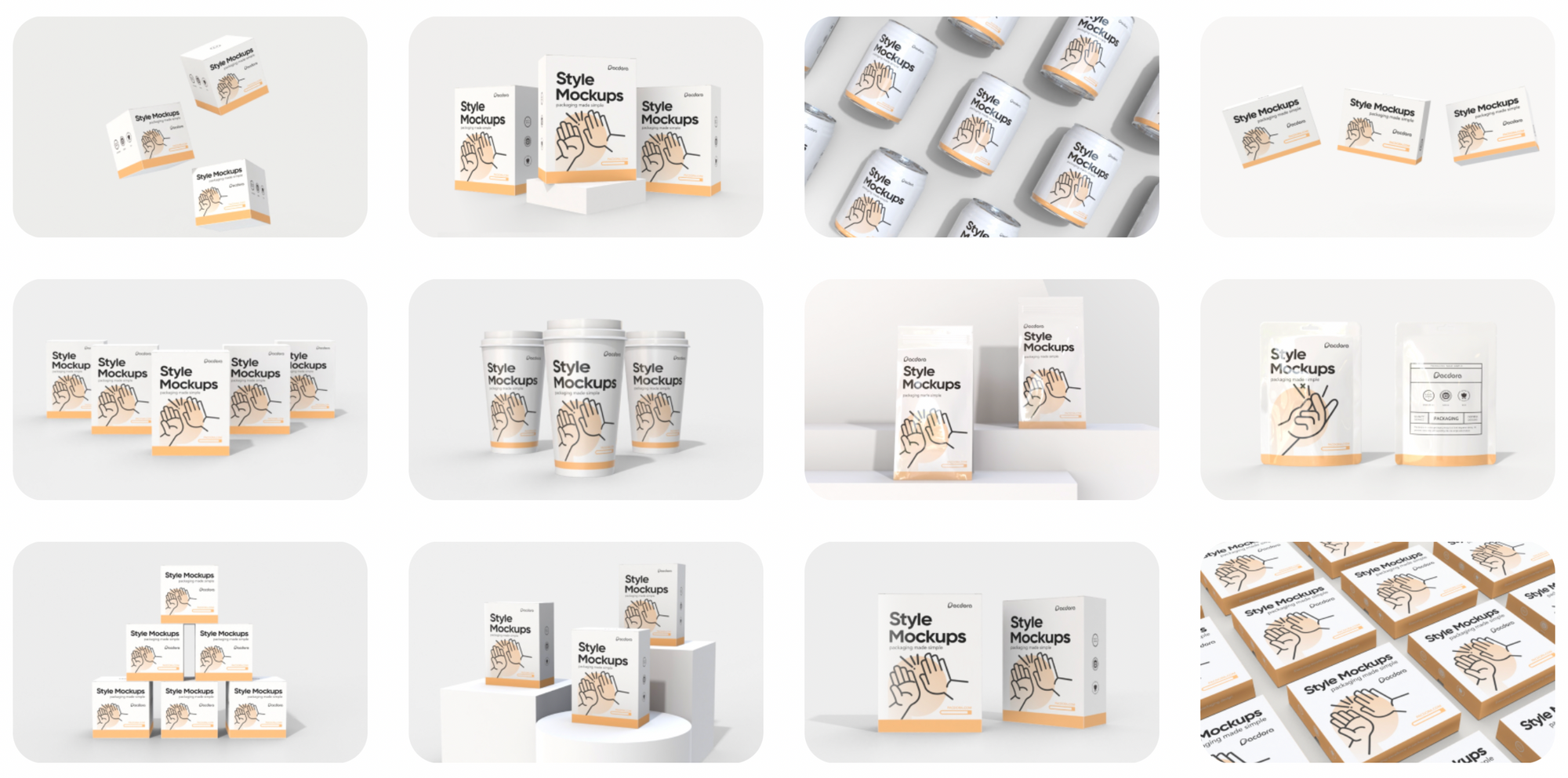 Макети задовольняють найвибагливіших користувачів, пропонуючи десятки типів макетів: коробки, склянки, пакети, чашки, банки, пляшки, трубочки, ящики, конверти, обгортки, одяг та багато іншого.