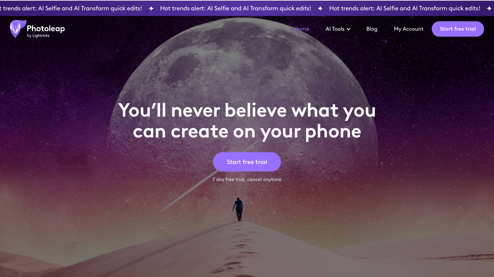 Щоб почати користуватися Photoleap, просто завантажте програму з App Store або Google Play Store для пристроїв iOS і Android відповідно. Після чого Photoleap запропонує 7-денну безплатну пробну версію, яка надасть повний доступ до всіх функцій та інструментів. Після пробного періоду ви зможете вибирати з різних планів передплати залежно від своїх потреб і бюджету.