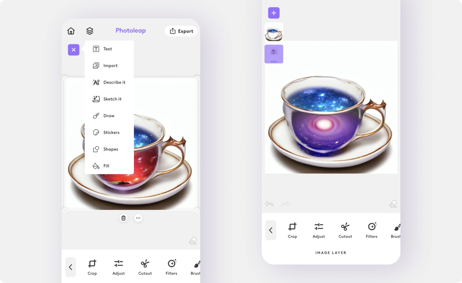 - Підтримка RAW: Фоторедактор Photoleap AI підтримує файли RAW, що дає вам більше контролю над процесом редагування.