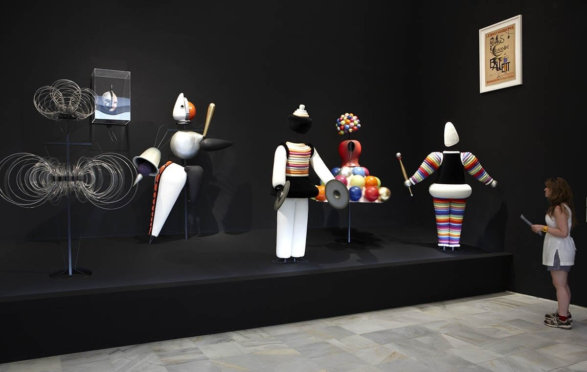 Еще одним влиятельным членом движения Баухаус был Оскар Шлеммер , немецкий художник, которого больше всего помнят по работе в театре. Его разнообразные навыки позволили ему преподавать рисунки, скульптуру по камню, резьбу по дереву, металлу, витражи, настенную роспись и театральные мастерские. Человеческая фигура была его главным предметом, который он задумал как состоящий из основных геометрических форм. Его костюмы, созданные для широко известного «Триадного балета» (1922), являются поистине уникальным вкладом в творчество Баухауза, а сам балет столь же экспериментален. Театр Баухаус под руководством Шлеммера был, пожалуй, самым публичным аспектом школы, тем более что Триадический балет проводился по всей стране.