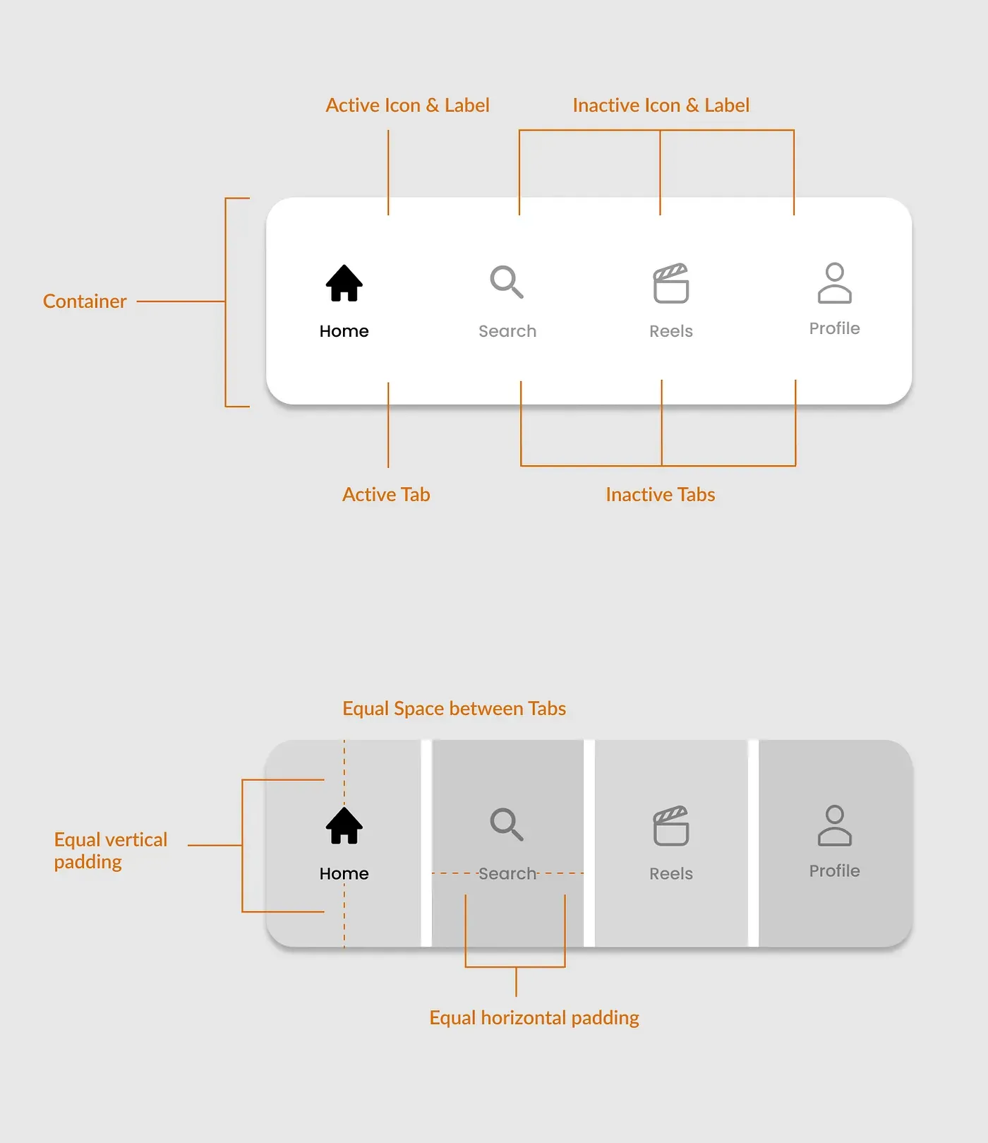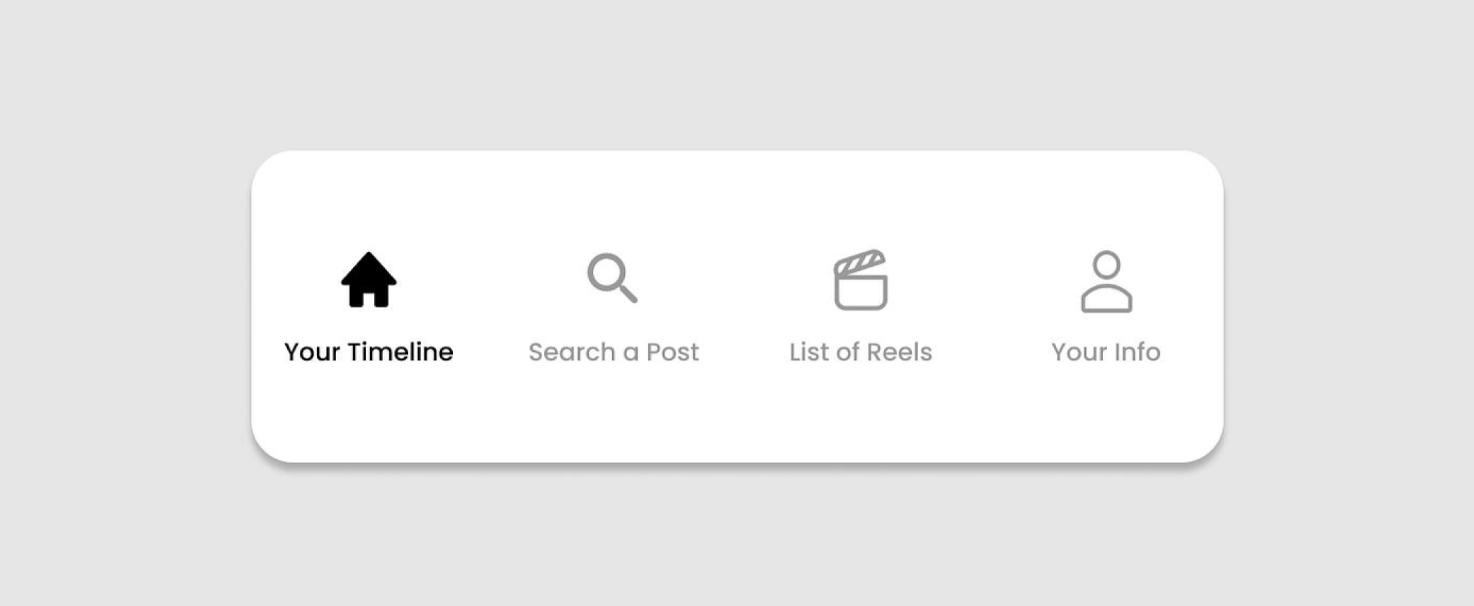 Нижня панель вкладок — це компонент інтерфейсу, який полегшує навігацію по розділах програми. Щоб перейти до потрібного розділу, достатньо одного дотику. Такі панелі часто зустрічаються в мобільних програмах і включають від 3 до 5 опцій.