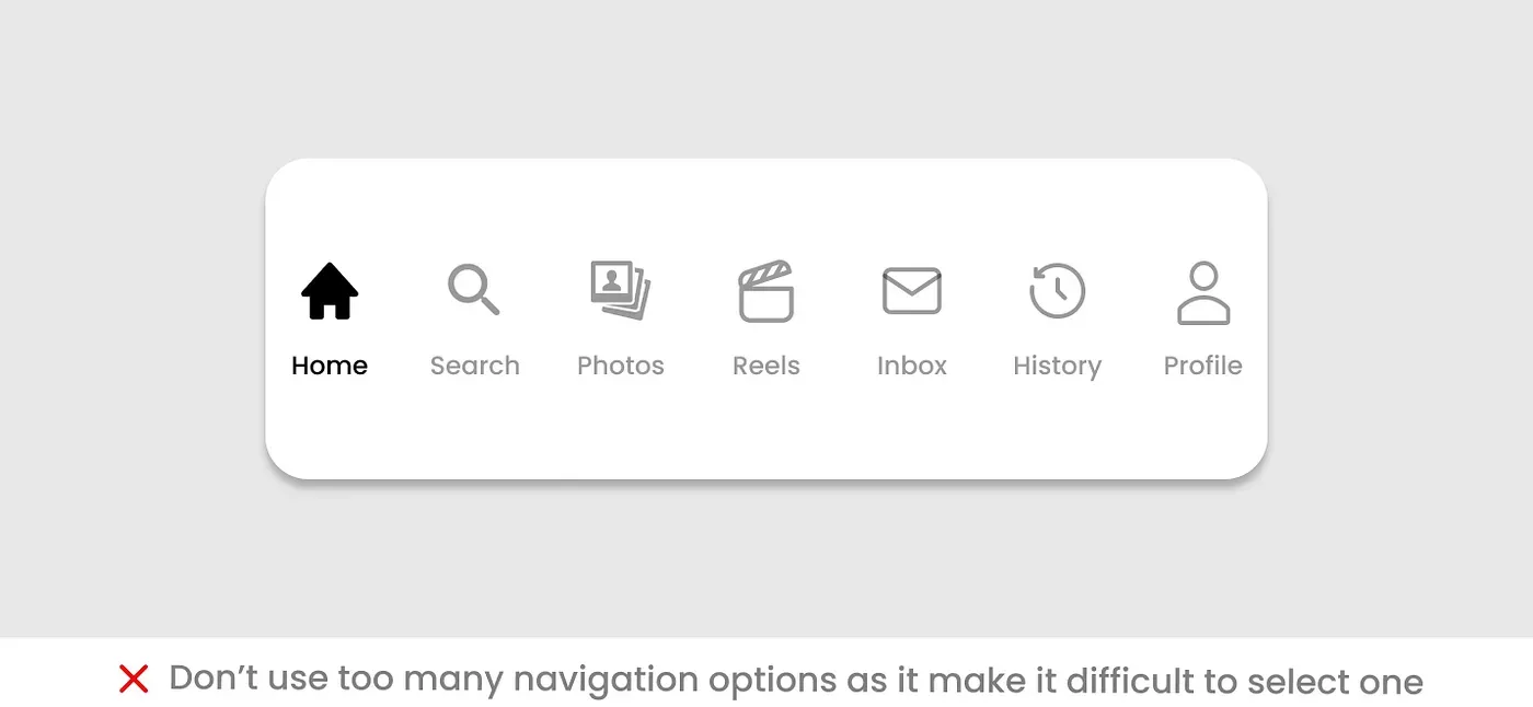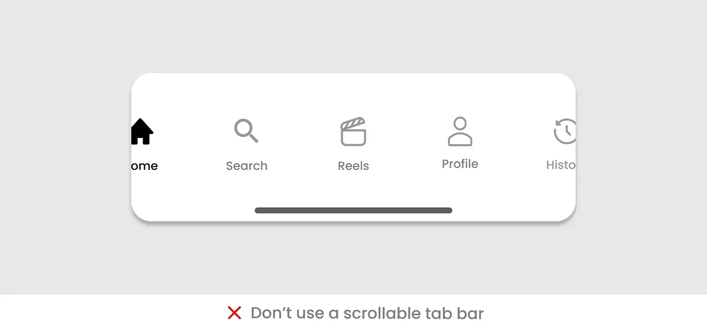 Якщо навігація верхнього рівня містить більше 5 опцій, розгляньте альтернативні UI-рішення. Ми розберемо кілька варіантів у останньому розділі.