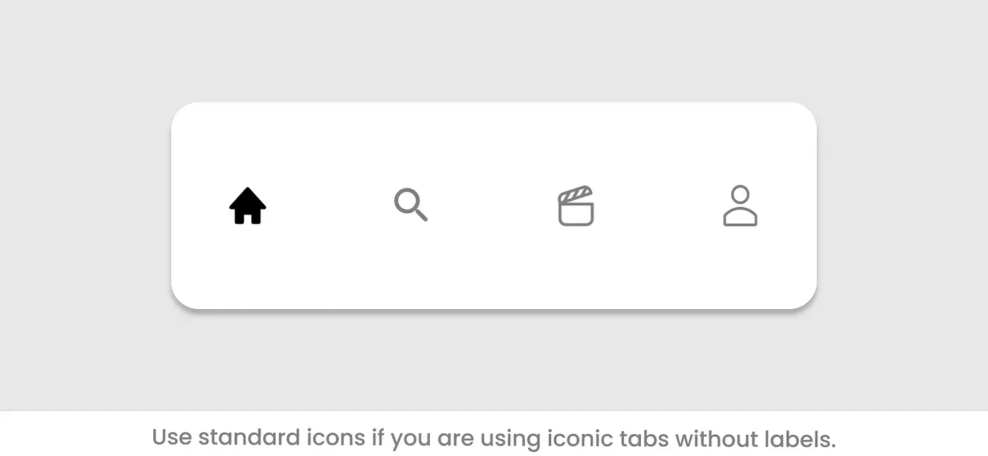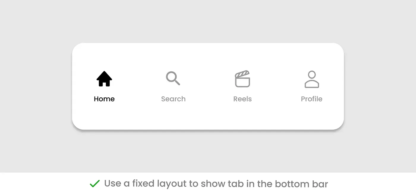 Відповідно до рекомендацій Material Design нижня панель вкладок повинна містити від 3 до 5 опцій. У ній відображаються лише розділи верхнього рівня.