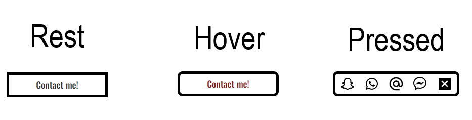 Як і інші типи кнопок, прозорі кнопки мають три основні стани: початковий (rest), при наведенні (hover) та при натисканні (pressed).