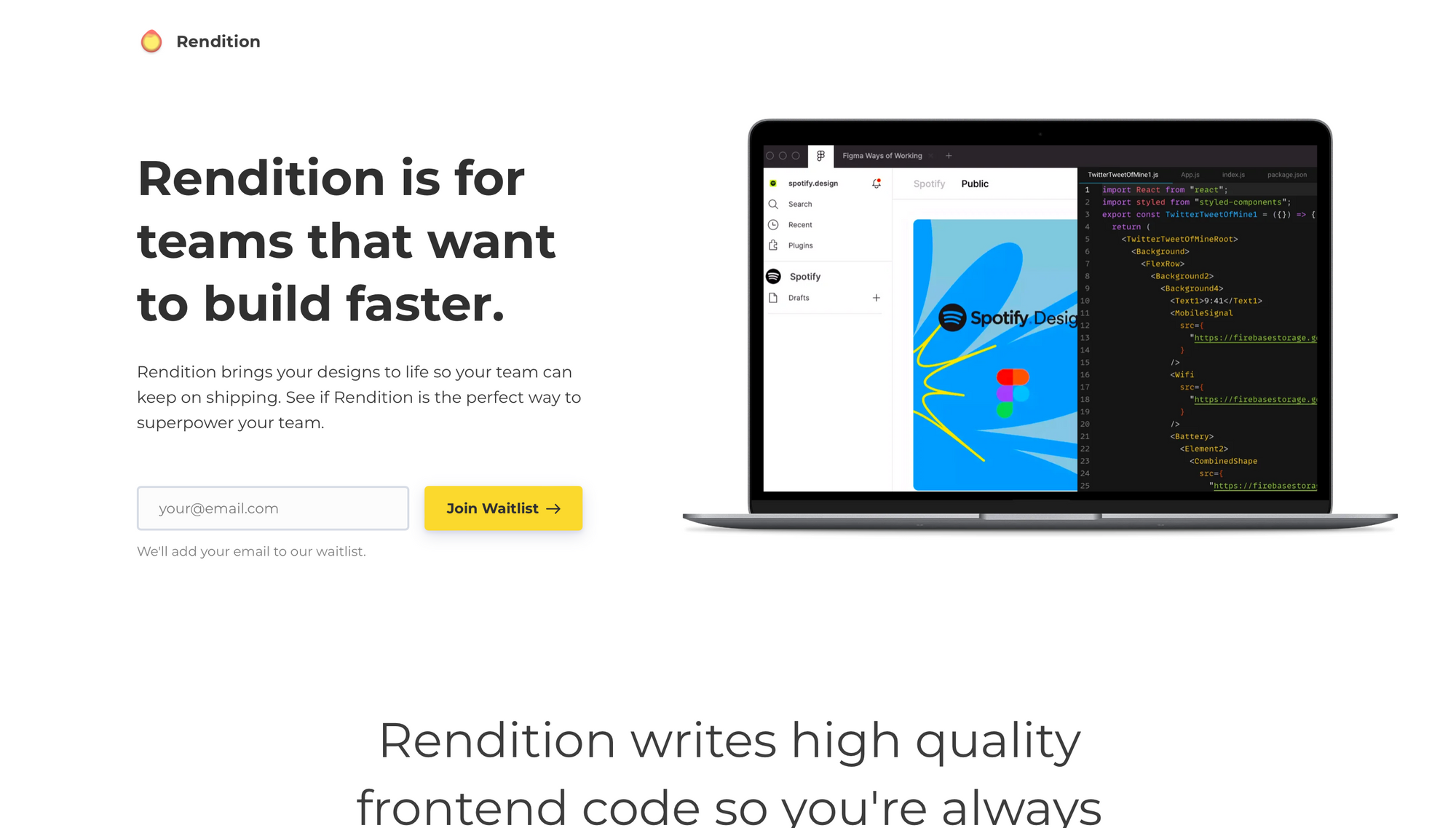 - Автоматизований процес: завдяки алгоритмам машинного навчання, Rendition робить перетворення дизайну в код максимально автоматизованим, зменшуючи зусилля, пов'язані з ручним кодуванням.