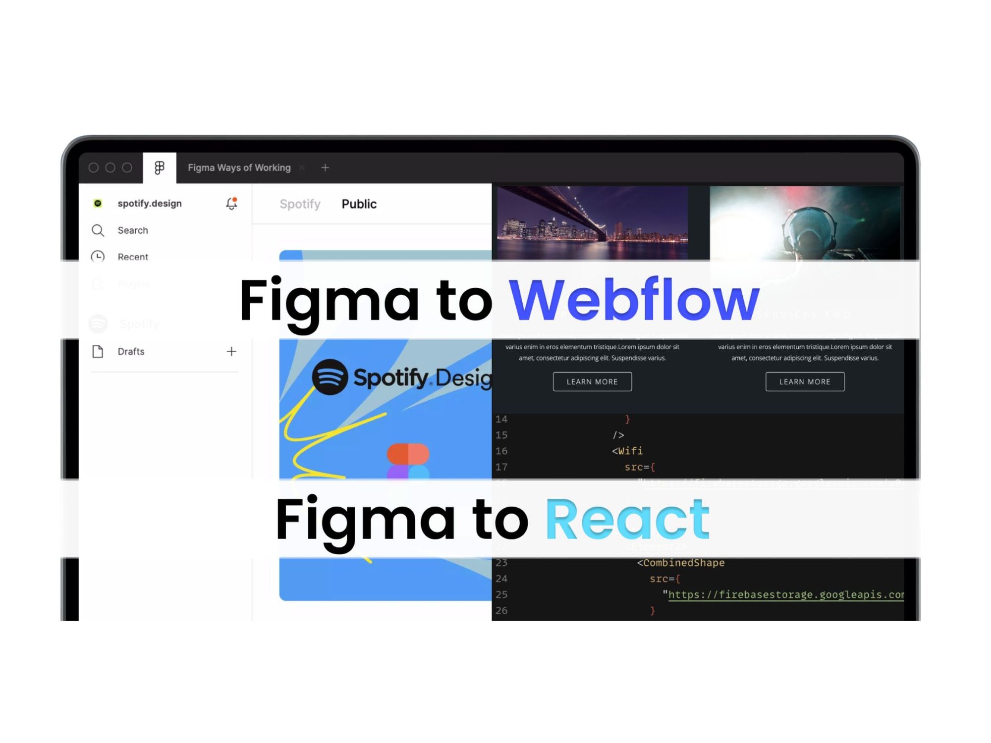 Rendition має вбудований плагін Figma, що дозволяє дизайнерам отримувати доступ до функціональних можливостей інструменту у власному робочому просторі, не переходити у зовнішні платформи та не переносити дизайни у інші програми. А також дозволяє зручно встановлювати код у конструктор сайтів Webflow.