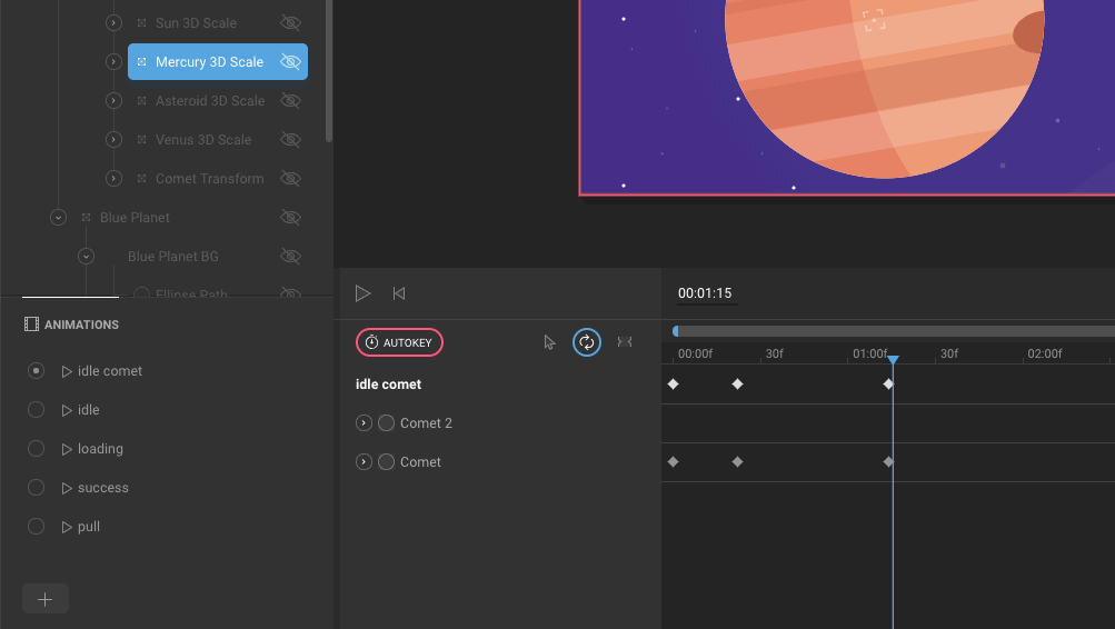 Програма досить гнучка та адаптивна до різних типів проєктів. Можете створювати простих і мінімалістичні прості анімації або складні деталізовані елементи інтерфейсу користувача. Крім того, платформа дозволяє створювати анімацію з використанням принципів анімації, таких як таймінг, способи переміщення та багато інших.