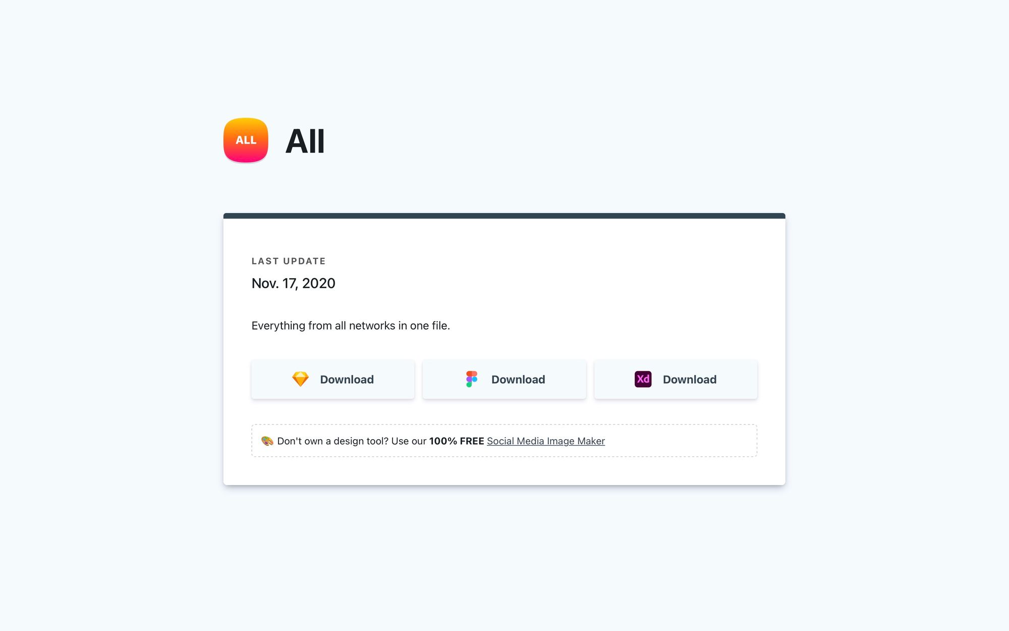 SocialSizes - это самый быстрый способ найти правильные размеры для самых популярных социальных сетей в мире. Сайт предлагает бесплатные шаблоны для загрузки самых популярных инструментов дизайна, включая Sketch , Figma, Adobe XD и Adobe Photoshop.