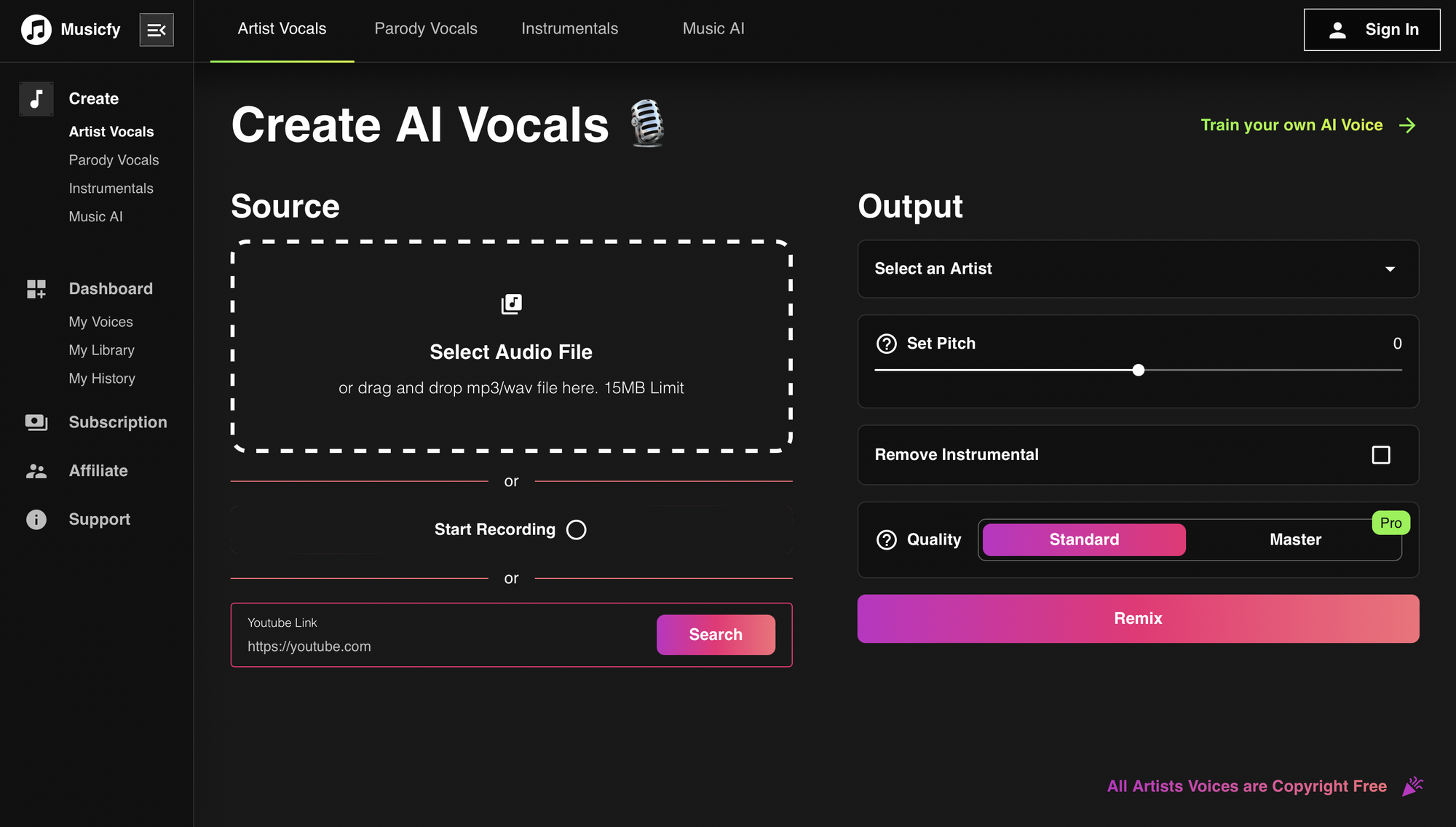 Musicfy — це голосовий, й водночас музичний інструмент зі вбудованим штучним інтелектом, який дозволяє легко створювати музику за допомогою власного голосу. Сервіс дає можливість самостійно наспівати мотив пісні й перетворити його на мелодію під конкретний музичний акомпанемент, додавши власний голос до будь-якої пісні. Вільно додавайте додаткові музичні ефекти: бас, ударні, вокал тощо та удосконалюйте звучання і якість створеної музики за допомогою вбудованих інструментів. Звуки та пісні можна взяти з бібліотеки Musicfy або завантажити свої.